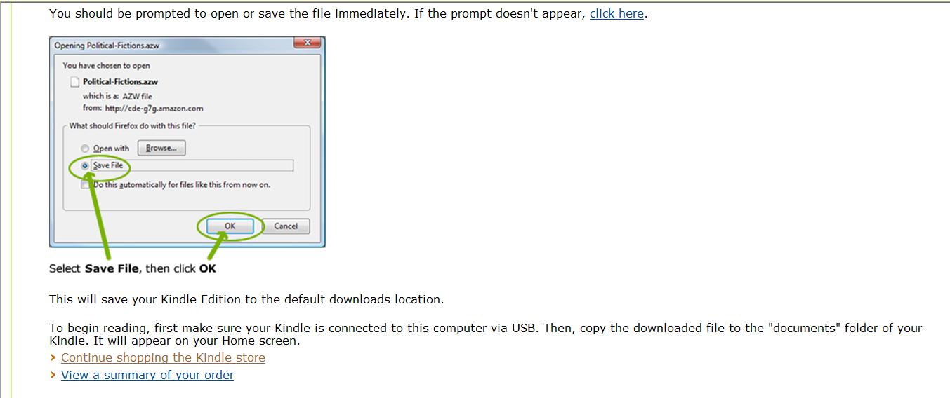 • If you have more than one Kindle, a screen will ask you what Kindle you plan to transfer the book to. Since you aren’t actually going to transfer the book, it doesn’t matter what you choose. Click continue.