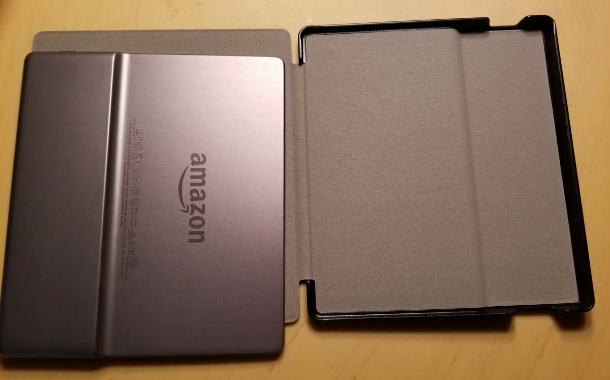 Because I have had bad experiences with them personally, I generally don’t purchase the Amazon-branded covers. But one of the things I discovered about the new Oasis is that the aluminum back is EXTREMELY slippery to read without a cover. Since I did not want to buy one of Amazon’s, I actually had to wait to really use my new Oasis until third-party cases were available.