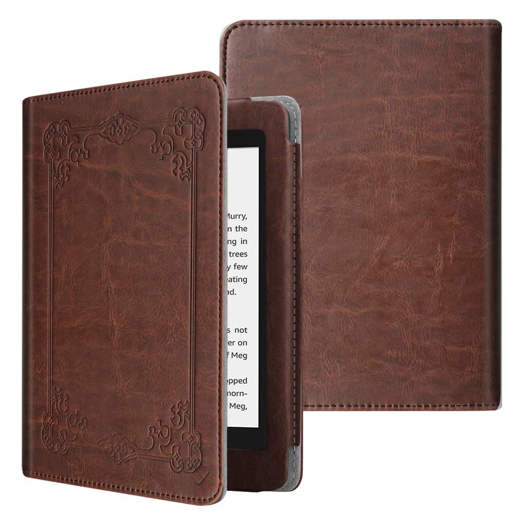 OMOTON Kindle Paperwhite Case (10th Generation-2018), Smart Shell Cover with Auto Sleep Wake Feature for Kindle Paperwhite 10th Gen 2018 – $11.99 to $13.99. Available in Black, Blue,  Purple, Brown,  and Love Tree print.  This case is PU ( artificial) leather.
