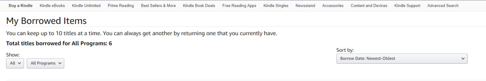 Under your borrowed items, you will see the number of total titles you currently have borrowed. Underneath are your options for showing Kindle Unlimited titles.
